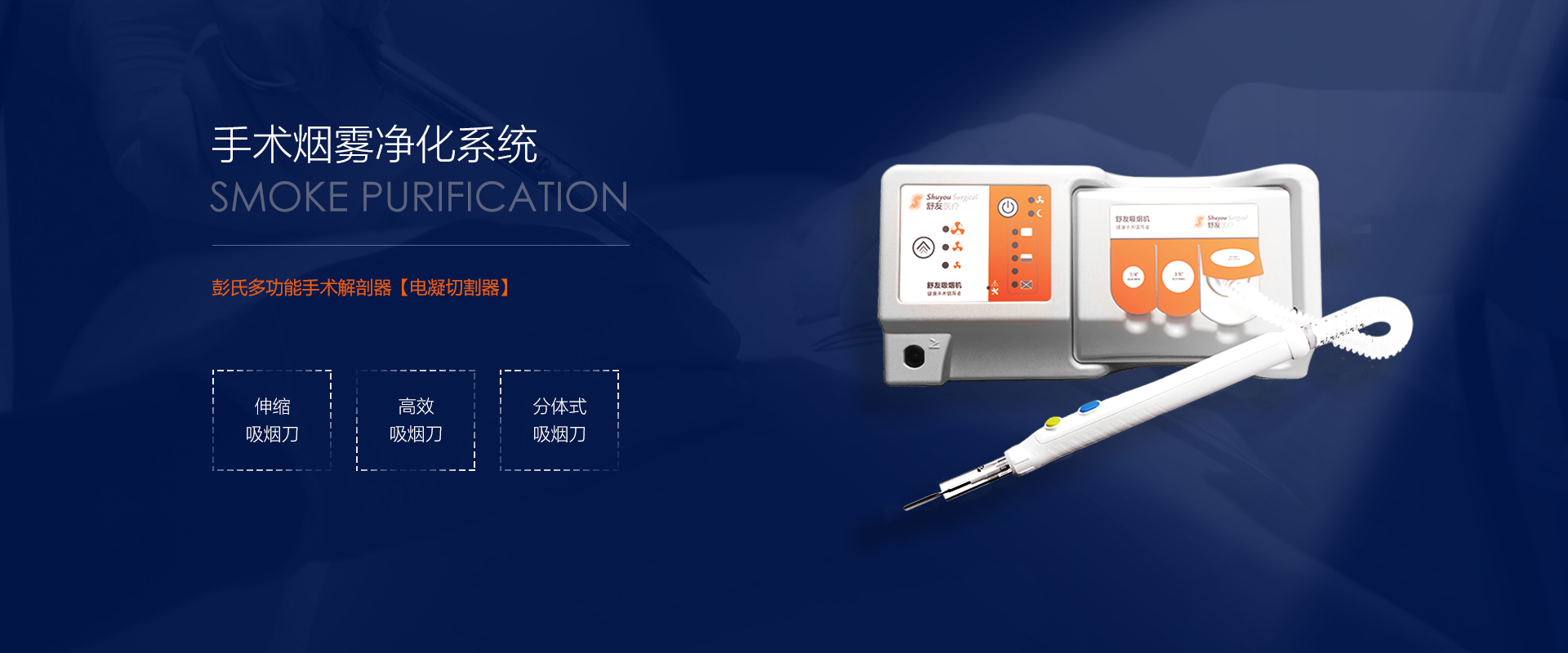 浙江舒友儀器設備股份有限公司始于2009年,主要從事電外科手術醫療器械的研發、生產與銷售,主要產品為手術解剖器及手術解剖器配件。已獲授權專利118項,其中美國專利1項、歐盟專利2項、澳大利亞發明專利1項、國內發明專利31項和實用新型專利43項。其中舒友牌彭氏多功能解剖器(PMOD)在國內外享有很高的聲譽,獲得“國家發明二等獎”。“刮吸手術解剖法的建立和多功能手術解剖器的應用”是國家衛生部“十年